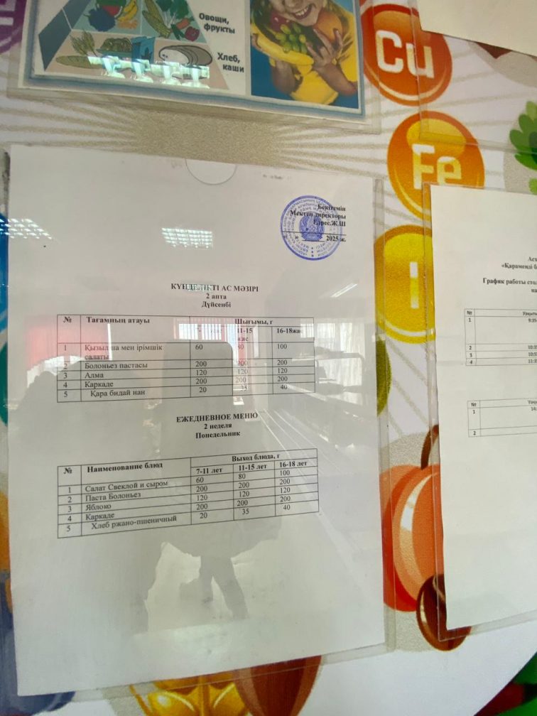 Мектептегі тамақтану мәзірі 3 тоқсан
